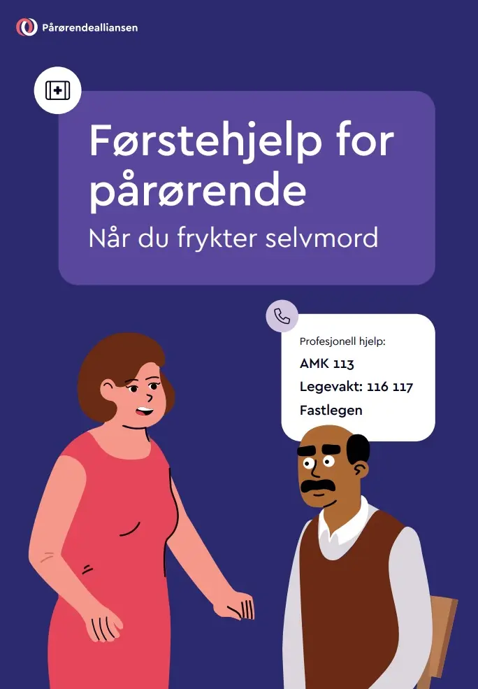 I denne brosjyren finner du som helsepersonell eller fagfolk råd og veiledning om hva du bør gjøre dersom du kommer i kontakt med pårørende som er bekymret for at noen i nær relasjon har selvmordstanker.